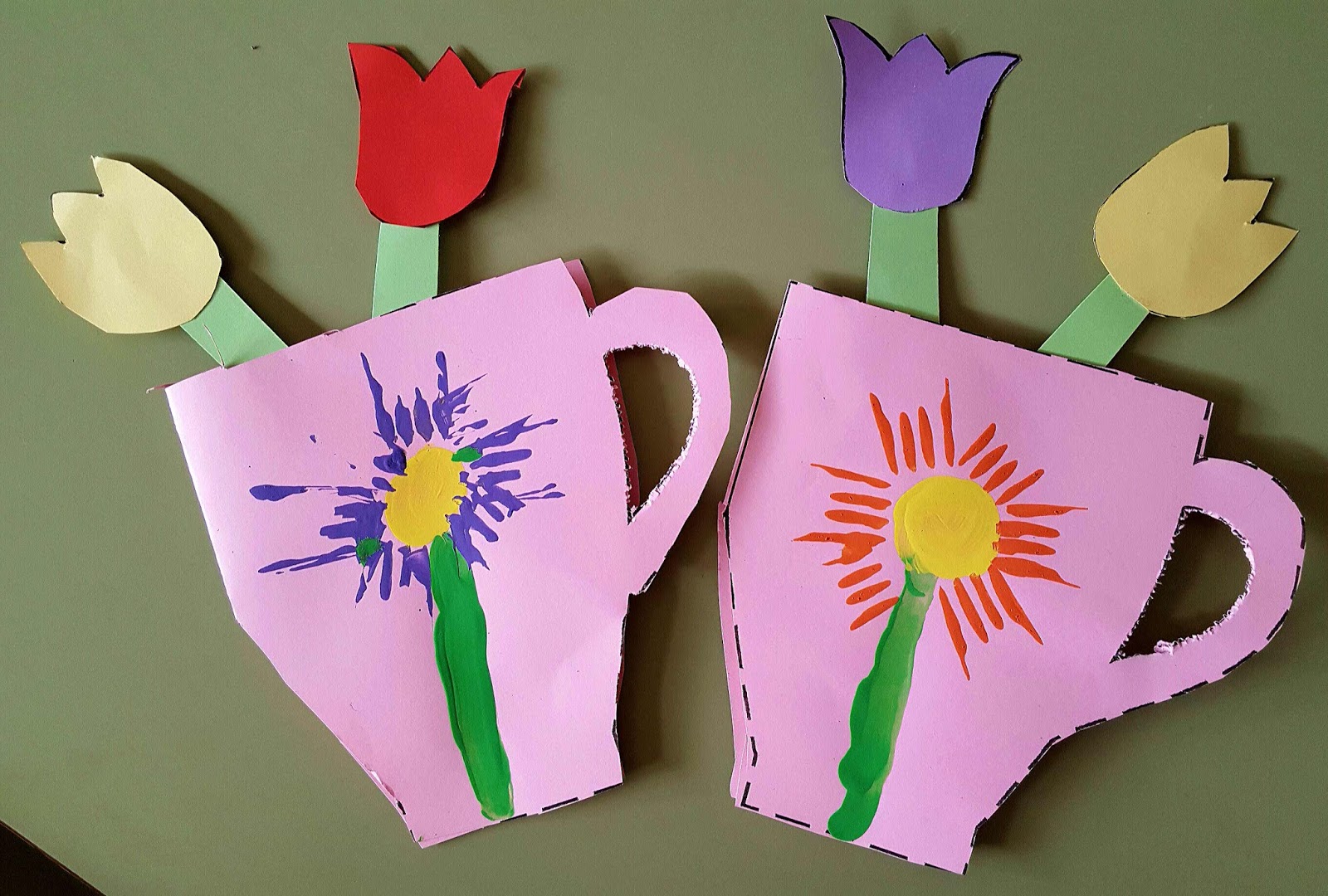 En este curso, para el día de la madre, hicimos unas bonitas tarjetas con forma de taza, donde realizaron una flor pintando con los dedos y con tenedores, dentro les pusieron una bolsita de té y algún mensaje escrito por ellos. La verdad es que quedaron muy chulas...